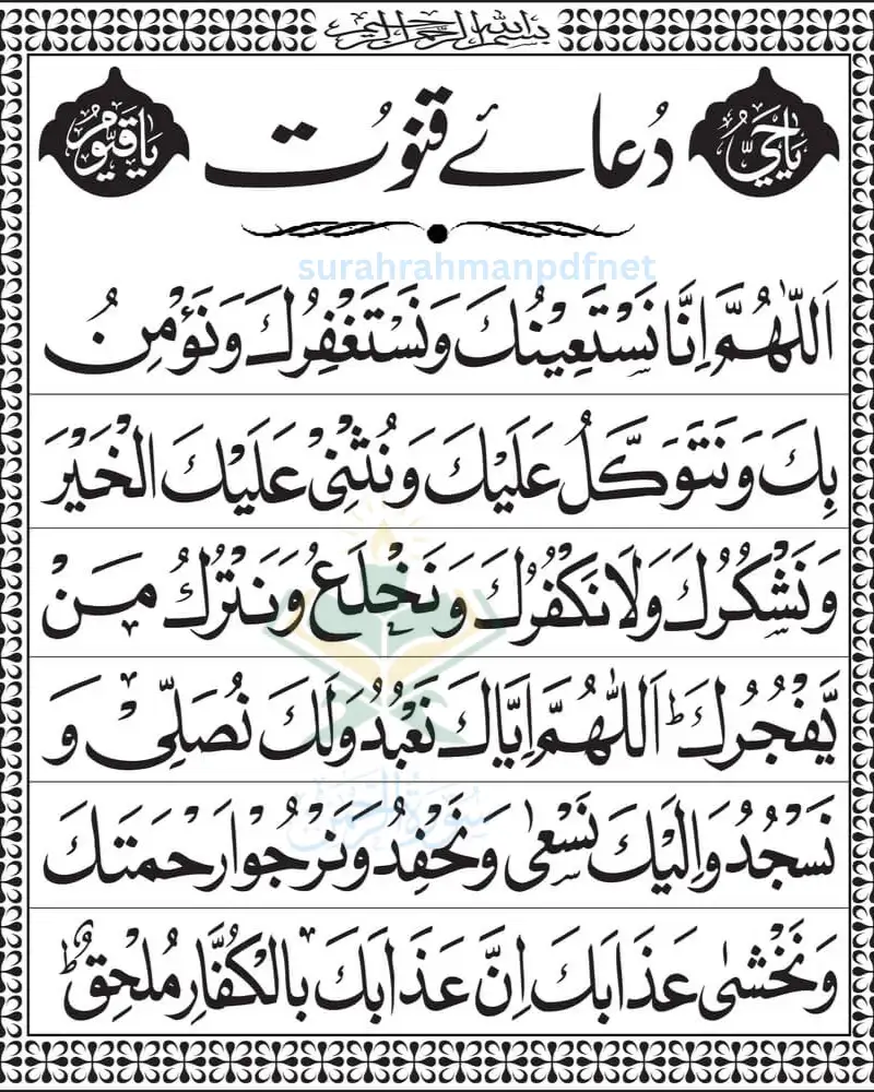 By downloading Qunoot Dua in PDF format you can read this dua online, and share with you loved ones.Download this free PDF and stay blessed by reciting this sacred text.