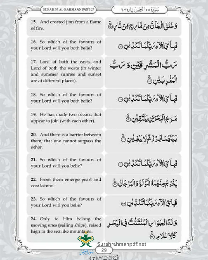 Surah Ar Rahman in English PDF